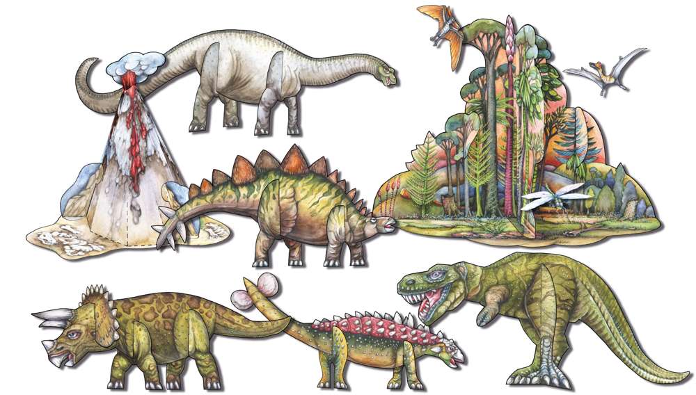 - Grösse: Dinosaurier: ca. 25 x 12 cm, Landschaft: ca. 31 x 23 cm