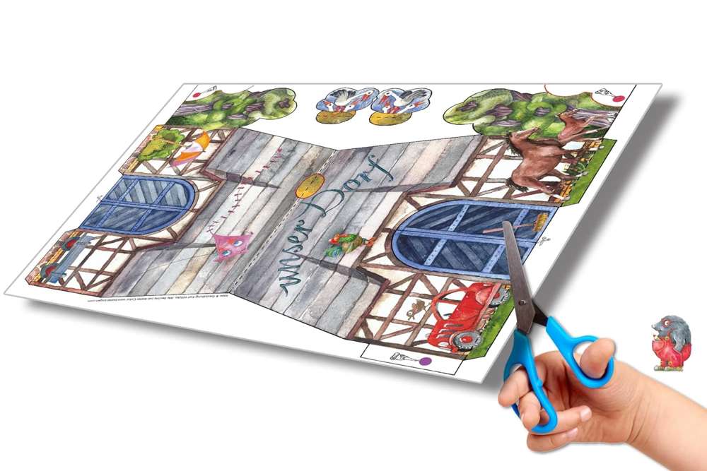 Dorf Bastelbogen für Kinder