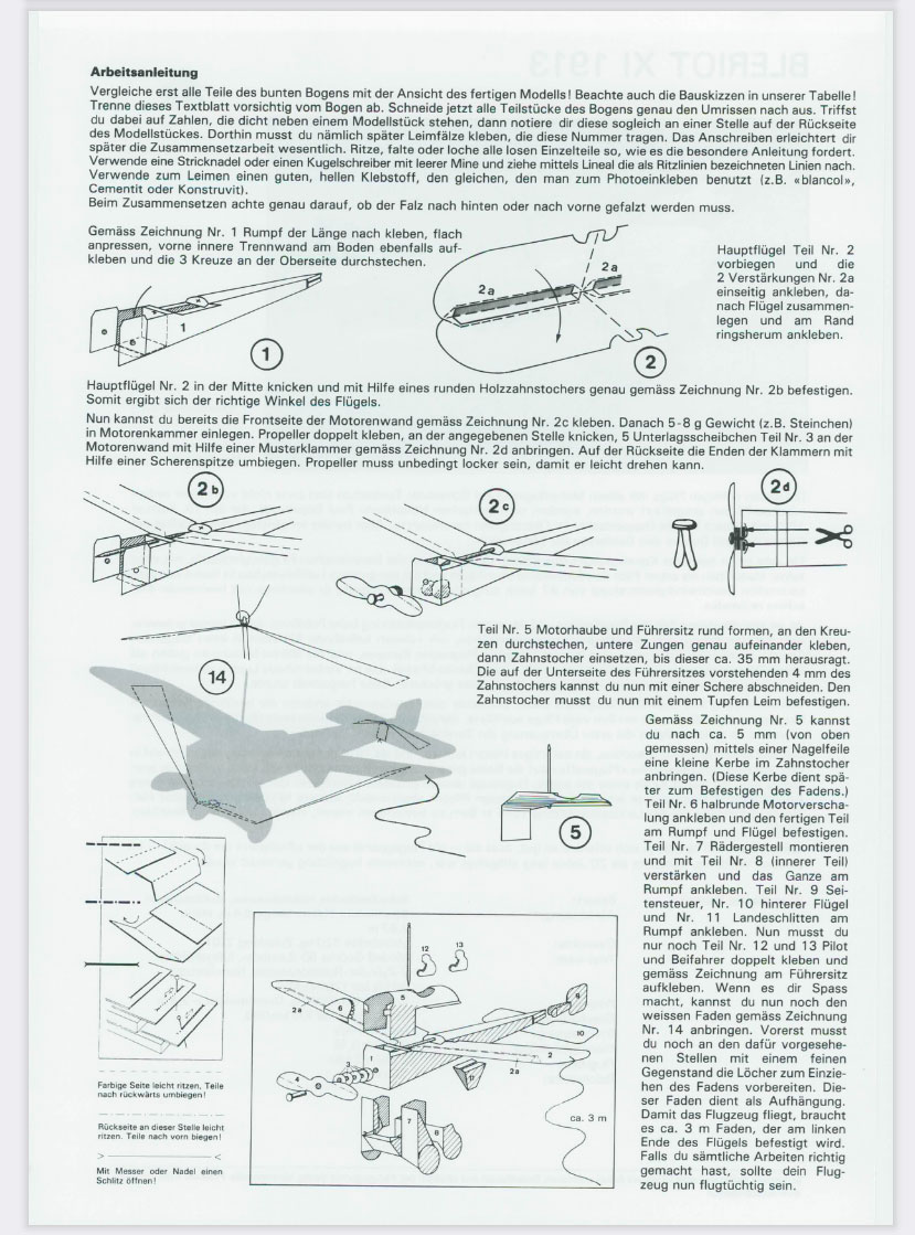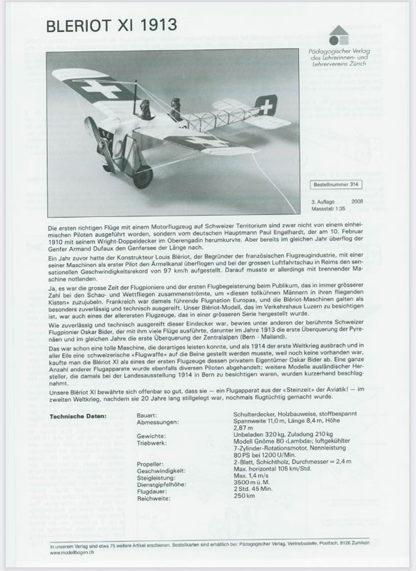 Modellbogen Blériot XI (1913) mit ausführlicher Beschreibung und wertvollen Informationen.