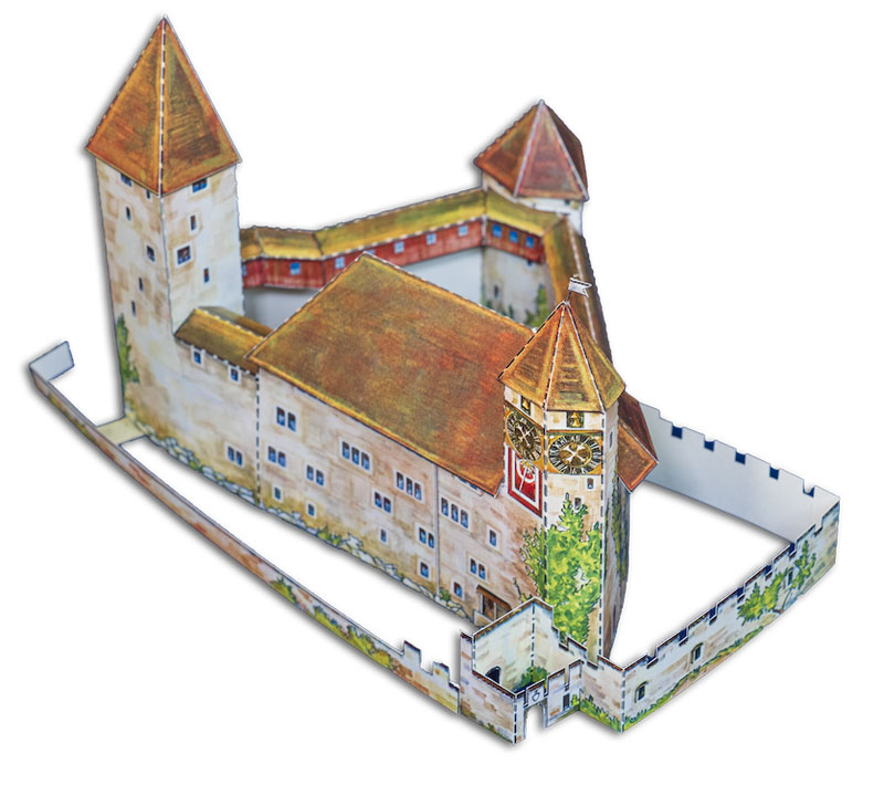 Mit diesem Modellbogen Schloss Rapperswil des Lehrervereins kann das Schloss nachgebaut werden. Die Schnitt- und Falzlinien sind aufgedruckt, so dass das Erstellen schülerleicht ist. Und wer es fertig gebaut hat, kann sich über das Bauwerk freuen.
