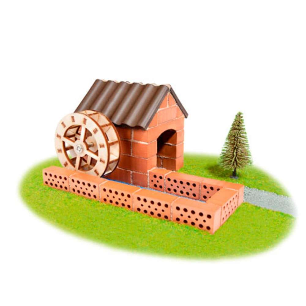Baue mit echten Ziegelsteinen eine Wassermühle