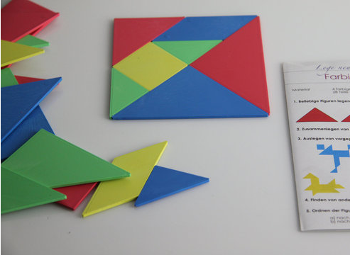 Tangram ist ein altes chinesisches Legespiel und besteht aus sieben Teilen. Aus diesen Plättchen kann ein Quadrat oder zahlreiche Formen gelegt werden, die dann Tiere, Schiffe oder andere Gestalten zeigen. Dazu müssen alle Teile verwendet werden und sie dürfen nicht übereinandergelegt werden.