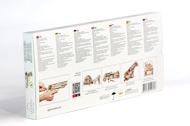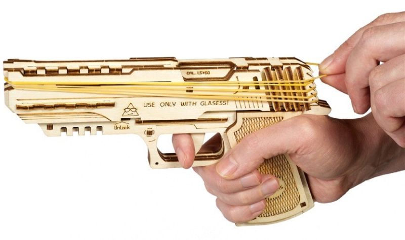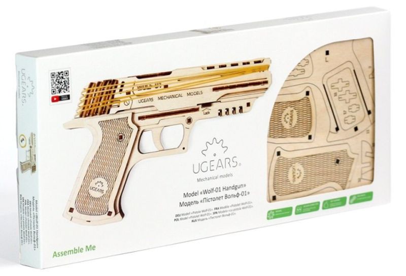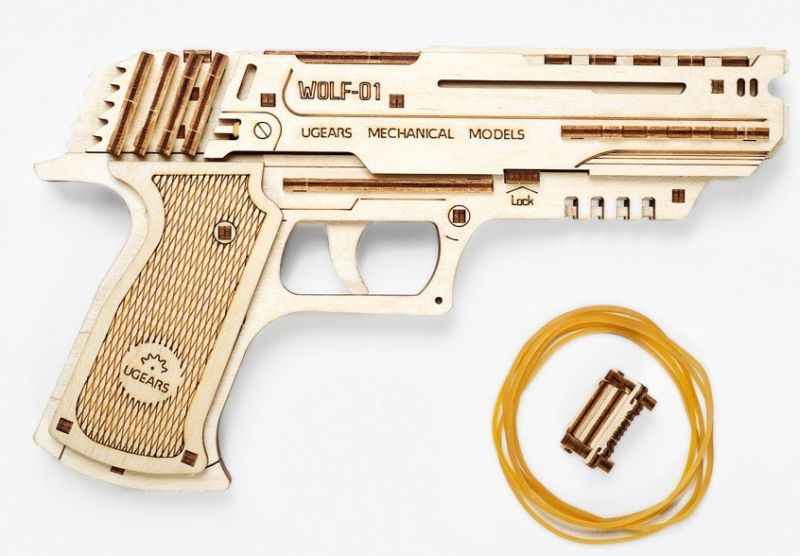 Die UGEARS Wolf-01 ist eine detailgetreue mechanische Handfeuerwaffe, welche bis zu 5 Schüsse nacheinander abgeben kann, ohne nachzuladen. Mit dem ausgezeichneten Handling und technischen Spezifikationen, vereint dieses Modell die zwei wichtigsten Punkte in Bezug auf eine Waffe – ein hohes Mass an Sicherheit und vor allem den friedlichen Spass.