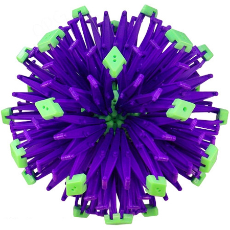 Der Hoberman Ball besteht aus zahlreichen gelenkigen Einzelteilen - diese Glow Variante leuchtet zudem im Dunkeln, wenn der Ball zuvor mit einer Lichtquelle beleuchtet wurde.