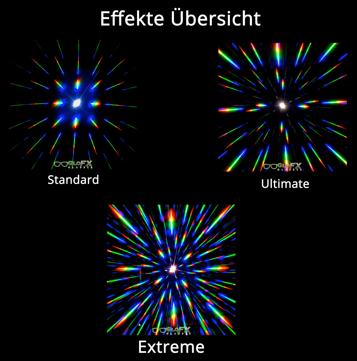 GloFX sind seit 2009 auf dem Markt und stellen innovative Produkte wie optische Effektbrillen, Regenbogenbrillen, Kaleidoskopbrillen her.
