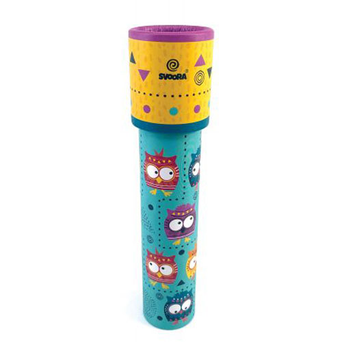 Schaue durch das Okular und drehe den Zylinder, dann siehst du ein zauberhaftes und einzigartiges Farbmuster. Die Formen und Farbkombinationen sind immer wieder verschieden. Das ist der Grund, weshalb Kaleidoskope seit Jahrzehnten faszinieren.