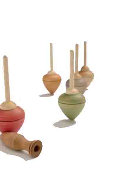 Der Abziehkreisel ist ein Schnurkreisel aus Eschenholz. Die um den Stiel gewickelte Schnur wird schnell abgezogen. Rekordlaufzeit ca. 4 Min.