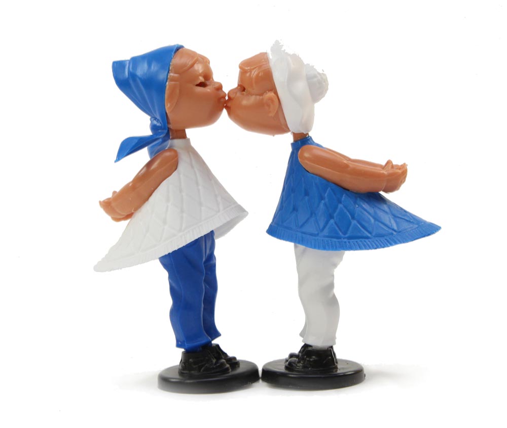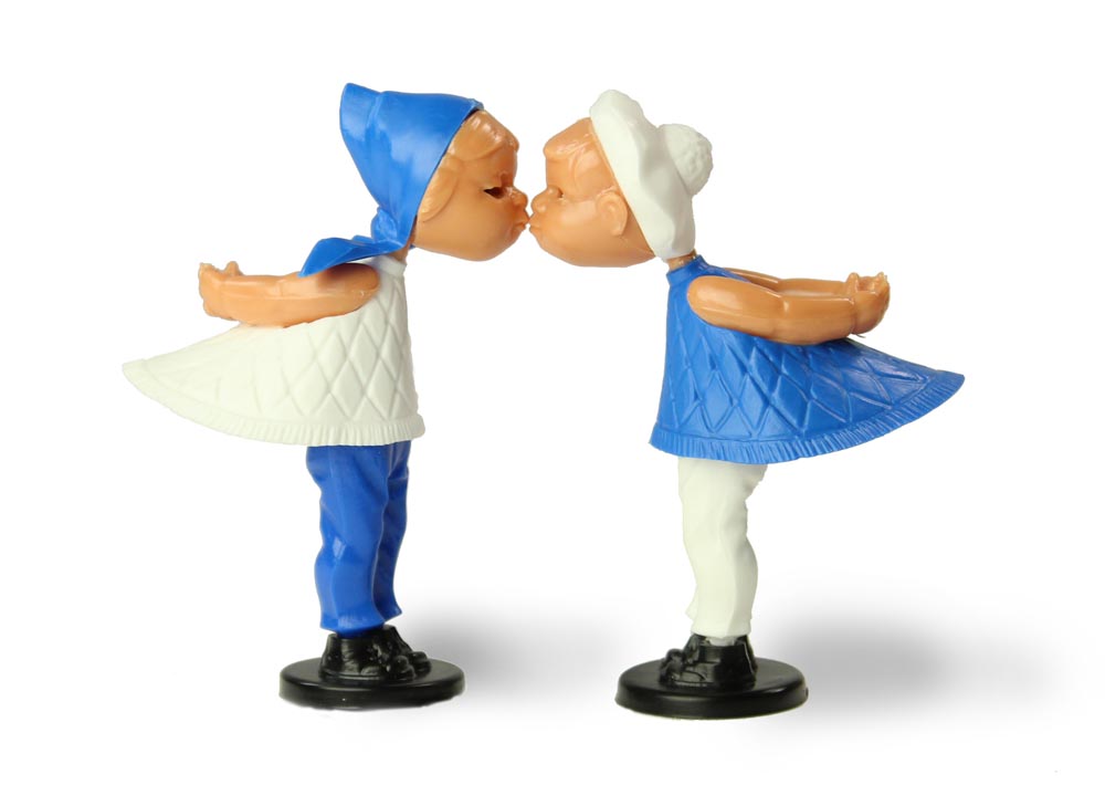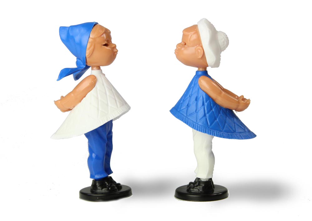 Die herzigen Kusspuppen von Magneto in Weiss und Blau. Das Mädchen mit Kopftuch, der Junge mit Hut.