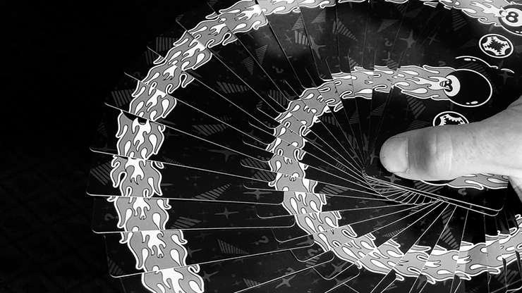 Die 8 Ball Magic Playing Cards verfügen nicht nur über eine atemberaubende Daumenkino-Animation, die gleichzeitig als Markierungssystem dient. Die Karten sind auch so aufeinander abgestimmt, dass sich damit wunderschöne Fächer, Spreads und Kaskaden erstellen lassen, die alle bereits bekannten Tricks visuell verstärken. Ein leichtverständliches englischsprachiges Video-Tutorial mit Tricks für Anfänger und Tipps und Hinweisen für erfahrene Zauberer ist enthalten. Alle Asse und Bildkarten sind mit Billardkugel-Nummer-8-Motiven versehen.