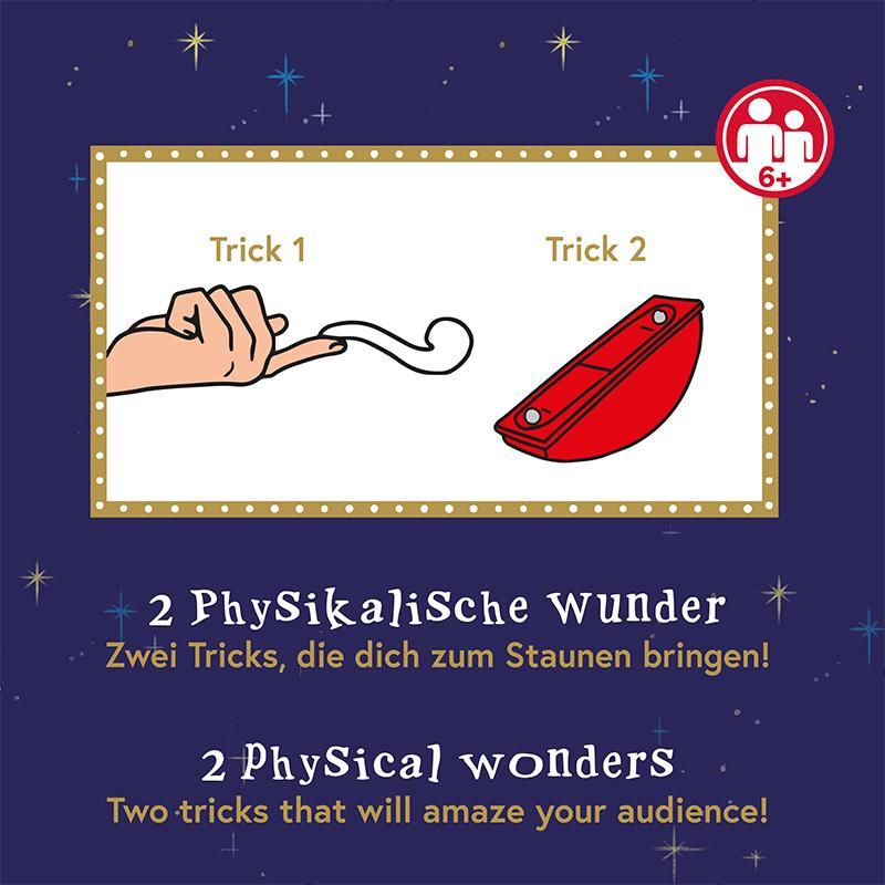 Zwei Tricks, die dich zum Staunen bringen! Präsentiere deinen Zuschauern zwei knifflige Rätsel, die kaum zu schaffen sind, und verblüffe sie mit deiner sensationellen Lösung! Mit diesem Set kannst du einen Haken balancieren und ein Geschicklichkeitsspiel mit Kugeln lösen!