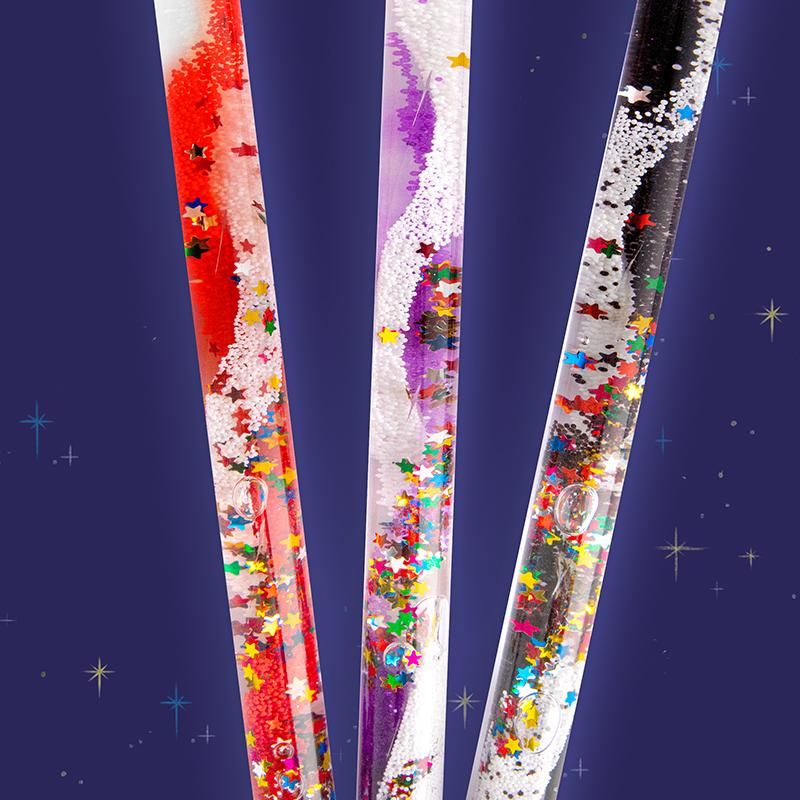 Zauberhaft und magisch! Dieser faszinierende Zauberstab ist mit bunten Glitzer-Sternen und Mini-Perlen gefüllt und wird sowohl dich als auch dein Publikum sofort verzaubern!