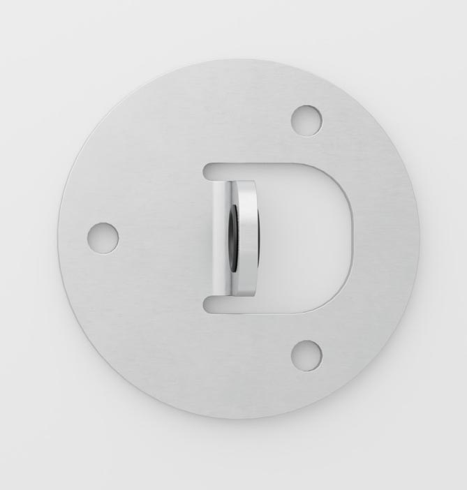 Die Platte hat einen Durchmesser von 12 cm, der Abstand zwischen den Löchern beträgt weniger als 10cm. Dadurch kann sie sowohl an den in Wohndecken üblichen Stahlbetonbalken befestigt werden.