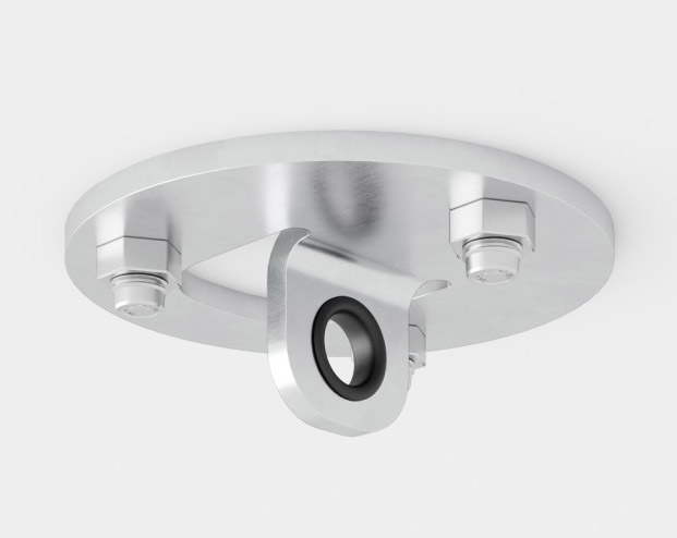 Robuste 6 mm dicke verzinkte Stahlplatte ohne Schweissnähte zur Verankerung von Aufhängevorrichtungen an der Beton-Wohndecke für Stoffe, Reifen, Trapeze und Seile.