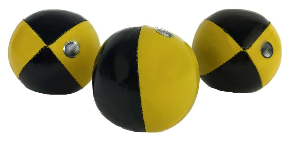 Der Jonglierball Primary Beanbag 130g, in der Grundfarbe Gelb mit schwarzen Schnitzen, der beliebteste und meist verwendete Jonglierball. Als Schweizer Qualitätsprodukt von Mr. Babache wird der Jonglierball 130g weltweit geschätzt.