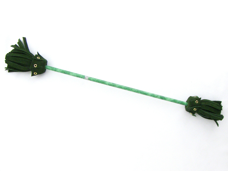 Dank den Eigenschaften des Glasfaserstabes ist er für Tricks in Kombination mit Kicks ideal. Die genieteten Lederquasten geben einen aussergewöhnlichen Blick auf den Devilstick.