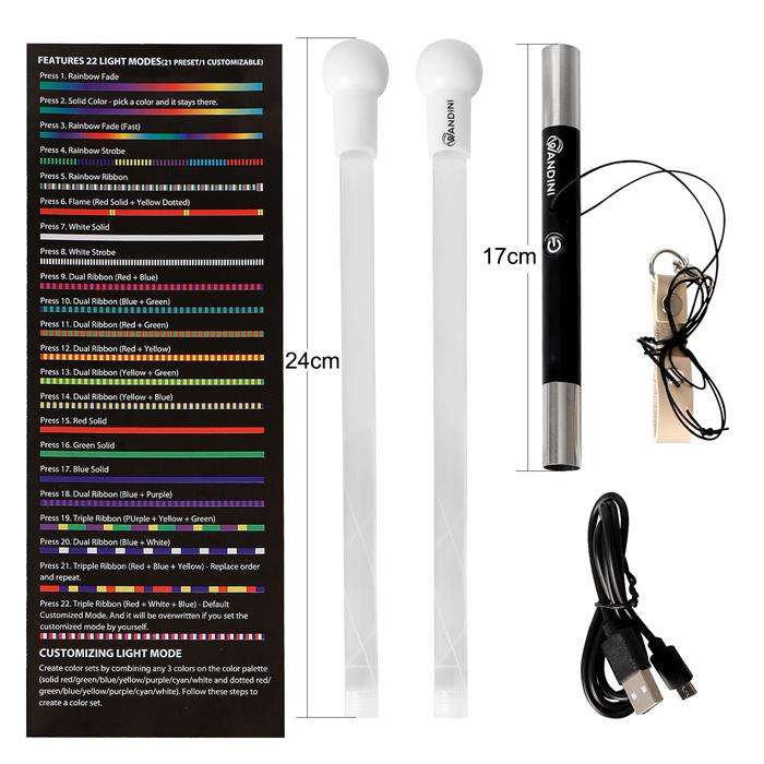 Wirbeln, wirbeln und wirbeln - jeder kann mit Wandini schillernde und hypnotisierende Lichtshows vorführen. Wickle Wandini einfach um den Mittelfinger und erzeuge durch Drehbewegungen eine Illusion von hellen Lichtern, die durch deine Hände in der Luft schweben.