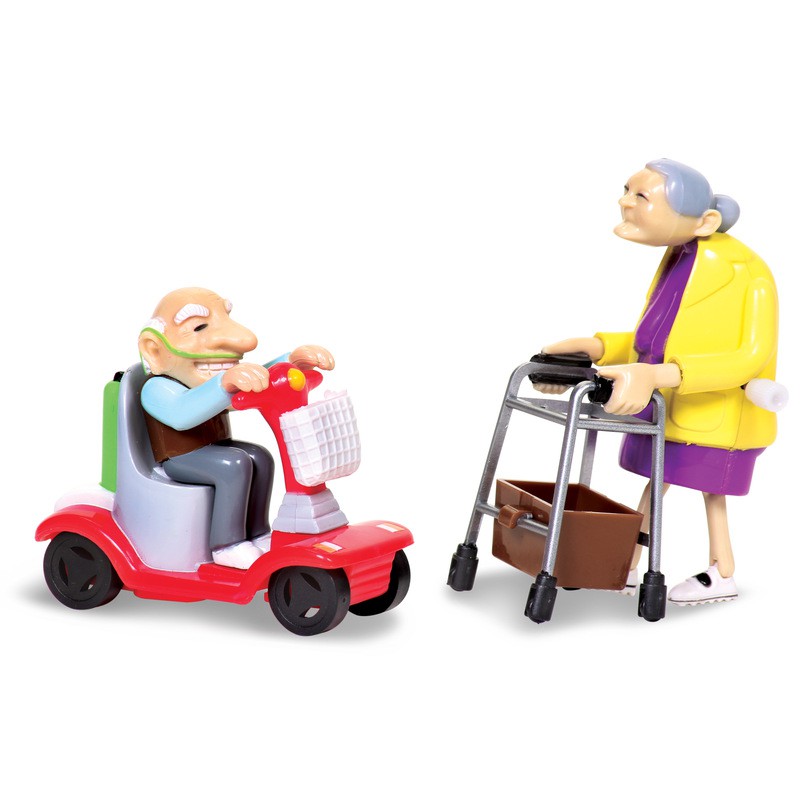 Spielzeug zum Aufziehen mit zwei Grosseltern die mit Rollator und Senioren-Roller. Wer ist... mehr