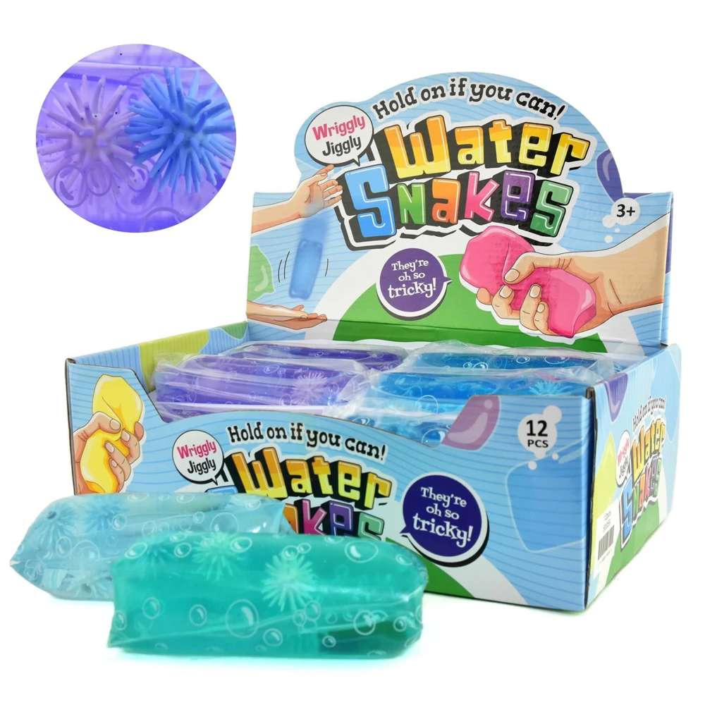 Dieser Flutschie mit Schneeflocke ist ein gefüllter Gummischlauch, in dessen Inneren sich eine wirbelnde, farbige Flüssigkeit mit kleinen Schneekristallen befindet. Die Wasserschlange ist schwierig zu fangen oder zu halten, da sie sich immer fortzubewegen scheint.