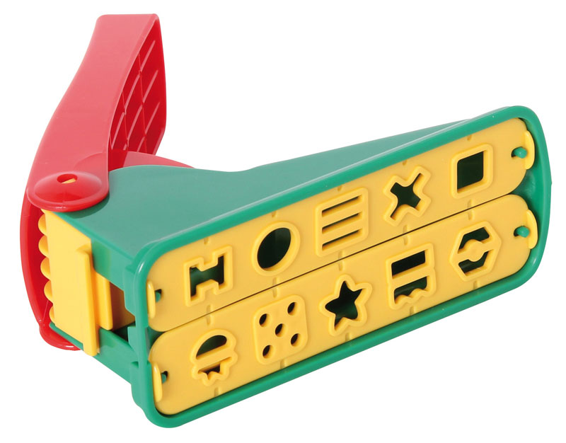 Mit dieser Knet-Presse lassen sich 10 verschiedene Knetstränge pressen. Sie umfasst zwei Einschubschablonen mit je 5 Formen. Diese Knetpresse bietet viele Möglichkeiten an Formen, vor allem das Pressen von Spaghetti oder des Sterns macht besonders Freude.