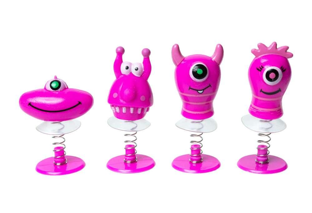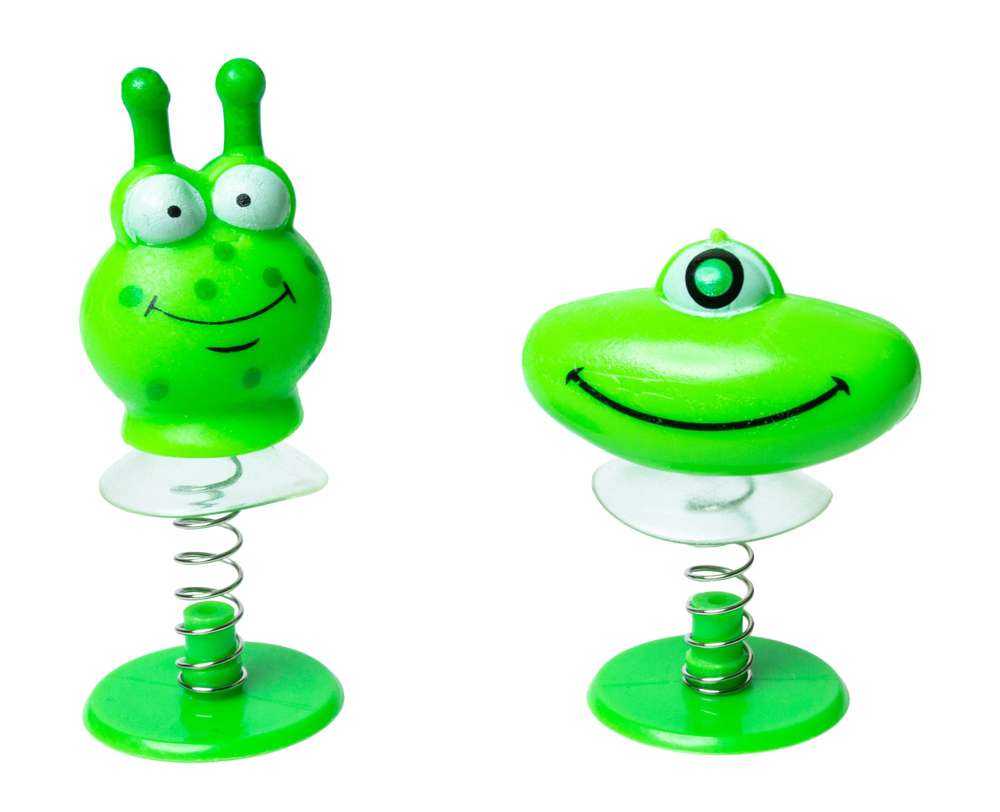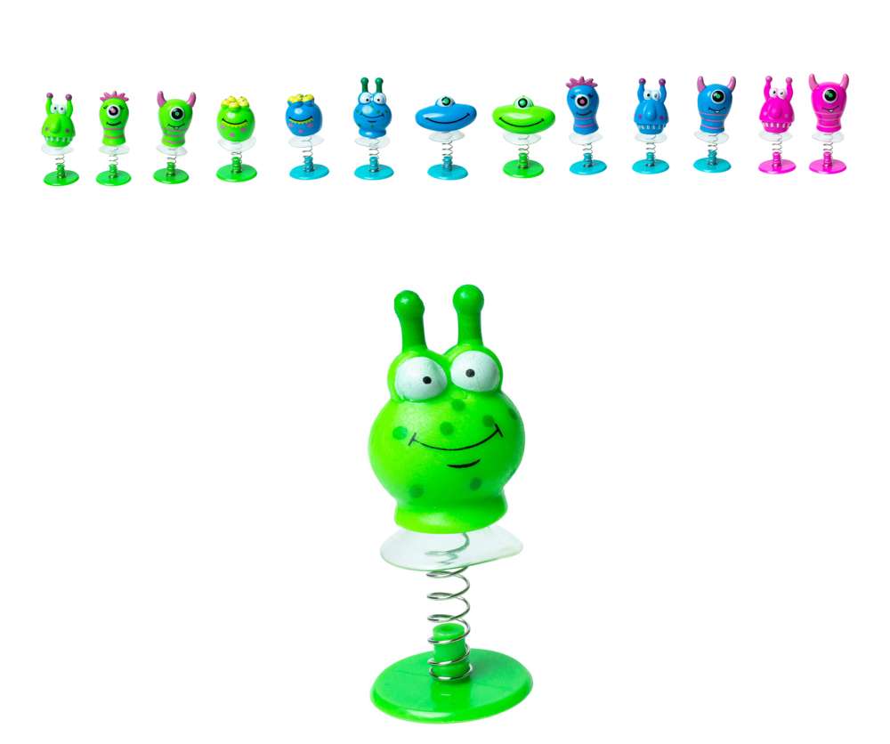 Dieser hüpfende akrobatische Alien auf Feder bringen Stimmung. Drücke ihn nach unten bis der Saugnapf am Sockel hält und warte bis das Monster springt.