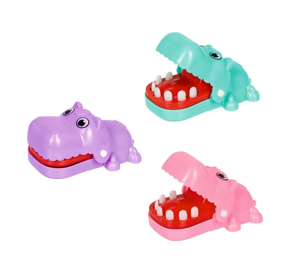 Lustiges Schnapp Spielzeug für Kinder: wem beisst das Nilpferd zuerst in den Finger? Eine lustige Alternative zum Schnapp Krokodil. Erhältlich in 3 Farben.