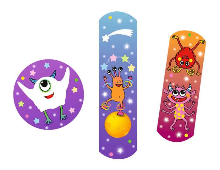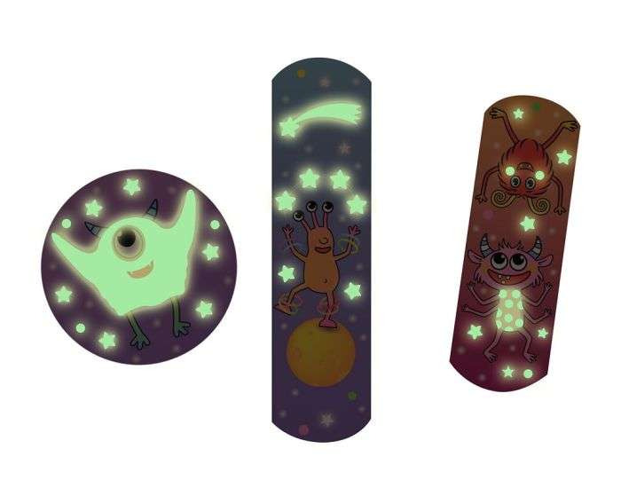 Diese farbenfrohen Pflaster mit leuchtenden Monster-Motiven spenden nicht nur Trost bei kleinen Verletzungen, sondern bringen auch Spass ins Spiel: Nach kurzem Aufladen unter hellem Licht leuchten sie im Dunkeln!