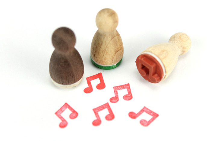 Die liebevoll gestalteten Ministempel aus Holz sehen aus wie Spielfiguren und haben auch diese Grösse. Mit den süssen Motiven lassen sich kleine Symbole stempeln.