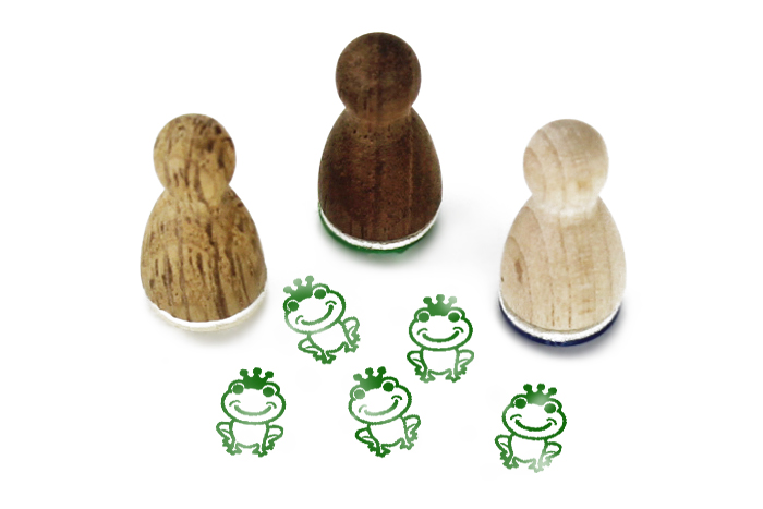 Die liebevoll gestalteten Ministempel aus Holz sehen aus wie Spielfiguren und haben auch diese Grösse. Mit den süssen Motiven lassen sich kleine Symbole stempeln.
