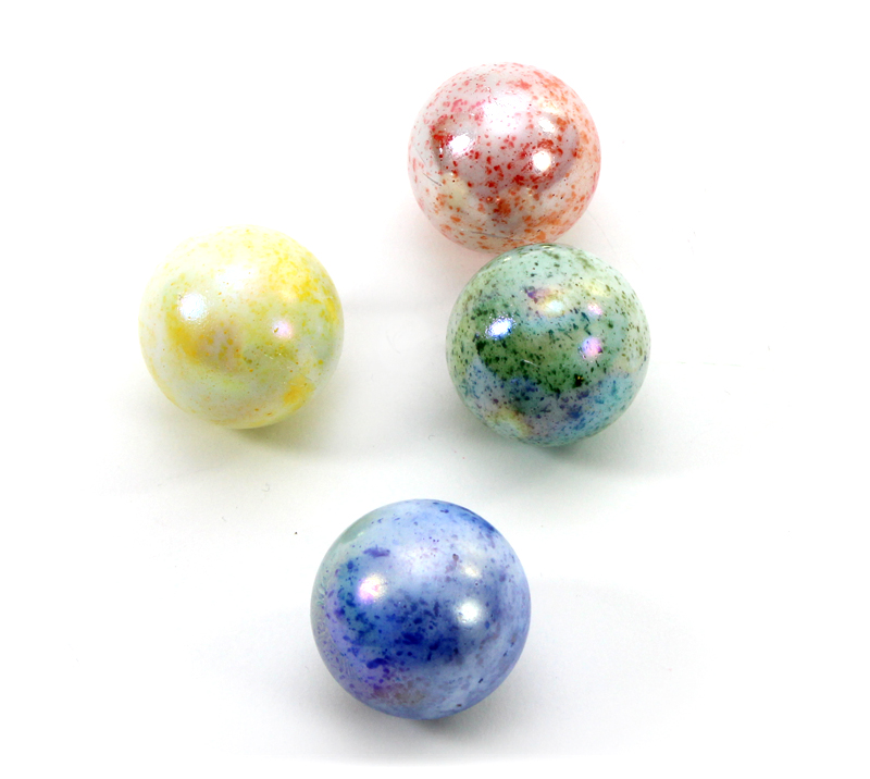 Weisse Murmel mit farbigen Sprenkeln. Preis pro Stück.