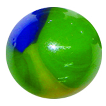Glasmurmel Pfau mit einem Druchmesser zwischen 14 und 17mm. Preis pro Stück. Die Glasmurmel mit den Farben Grün, Blau und Gelb, könnte auch die Brasilianische heissen.