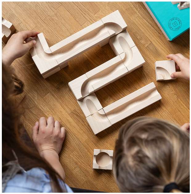 Die Kugelbahnen können in eigene Formen und Richtungen gestaltet werden. Die Herausforderung eine coole Bahn zu schaffen fördert die Kreativität. Cuboro ist ein beliebtes Spielzeug für Kinder und Erwachsene und wird oft in Schulen und Kindergärten verwendet.