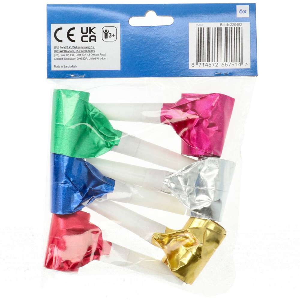 Beim Hineinpusten rollt sich das Papier zu einem Rüssel aus und das bekannte Pfeifen ertönt. Durch die metallische Folie sind diese Tröten besonders stylisch.