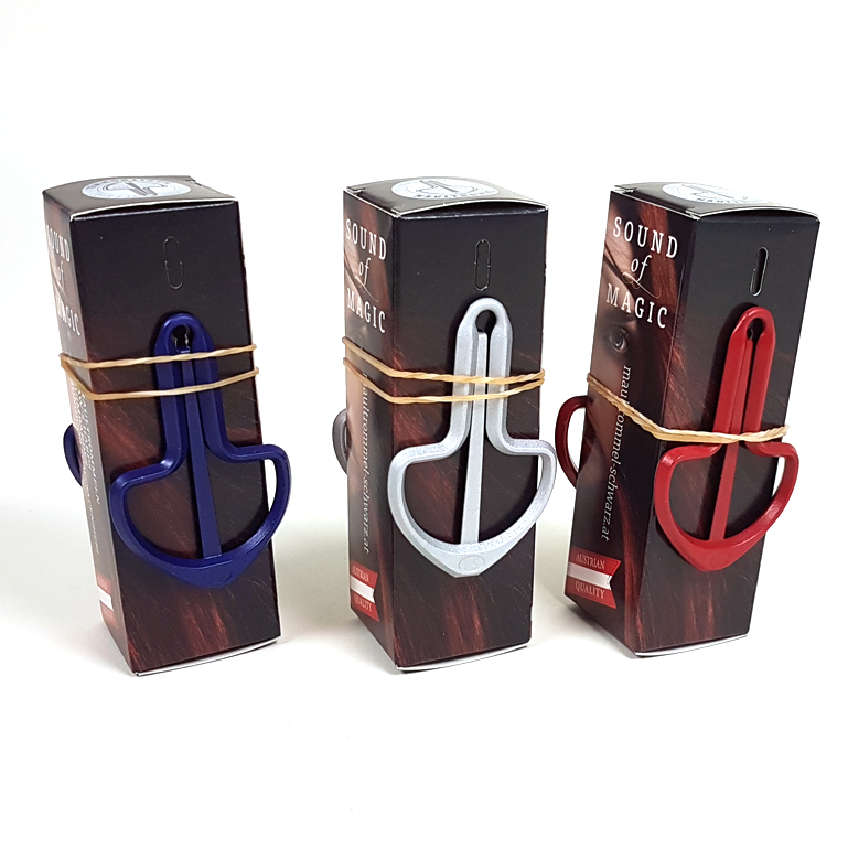 Preis für 1 Maultrommel. Spezial-Mattlackierung in silber, blau oder rot. Die Auslieferiung der Farbe erfolgt zufällig.