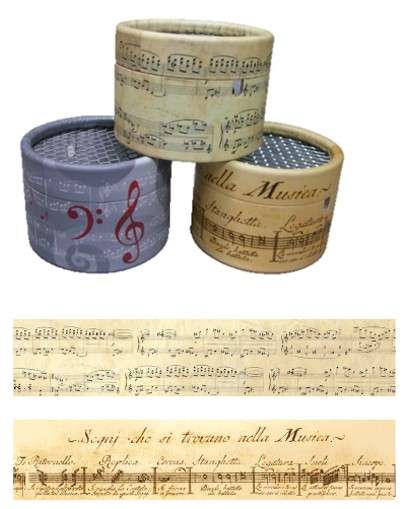 Produktinformationen "Papierdosen für Musikdosen - Sujet: Noten"