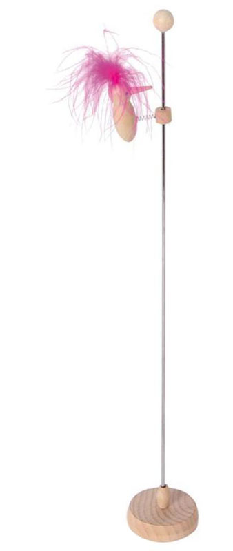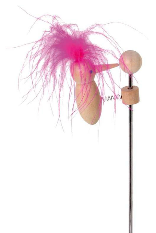 Der lustige Holzspecht an der Metallstange. Bringen Sie den Specht auf Position und lassen Sie ihn die Metallstange runterhopsen.