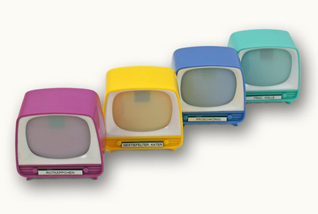 Wer kennt sie nicht, die kleinen nostalgischen Plastik Fernseher, die als Bildbetrachter funktionieren? Schauen Sie durch den Gucker am Kunststoff Fernseher und klicken Sie durch die 8 nostalgischen Märchen Bilder. Nostalgisch Zappen!