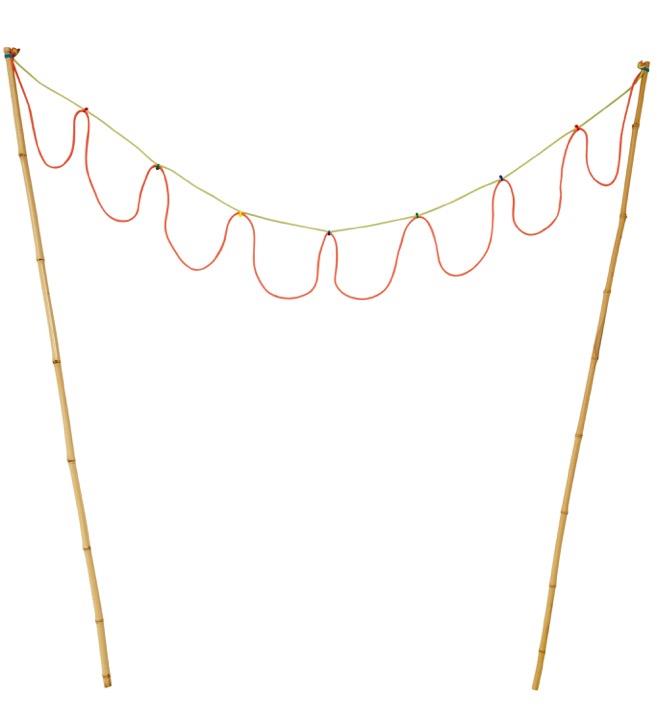 Die Seifenblasenschnur Girlande hat acht Kammern und erzeugt mit der Zauberseife gleichzeitig acht mittelgrosse und farbenprächtige Seifenblasen.