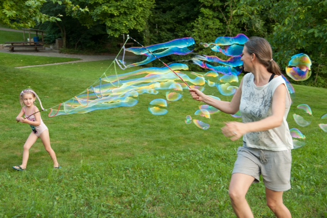 Eine möglichst hohe Luftfeuchtigkeit und saubere Luft, so gelingen die riesigen Seifenblasen mit der Zauberseife am besten. Das prächtige Farbenspiel der riesigen Seifenblasen von der Zauberseife verzaubern nicht nur Kinder.