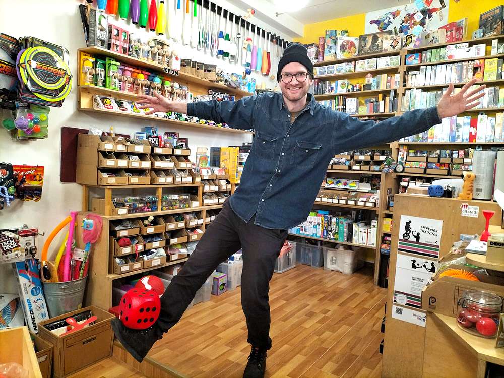 «Eine unserer regelmässigen Spielabend-Besucherinnen hat sich bei uns nach NULLI erkundigt und wir wurden hellhörig. Der Kontakt war schnell hergestellt und schon landeten die NULLI-Blöcke im Jugglux-Sortiment. Wie passend auch für unseren Spielabend im Bistro unterhaltsame Würfelspiele.»