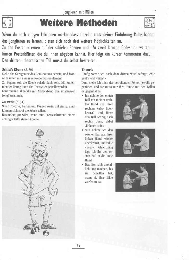 Grundsätzliche Überlegungen zu Wert und Sinn des Jonglierens - speziell auch in der Schule runden das Werk ab.