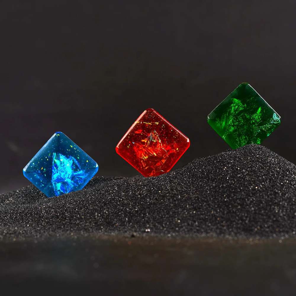 Aus Harz hergestellt und mit Präzisionstechnik kombiniert, bringen die Einlagerungen eine lebhafte Farbpalette zum Leuchten.