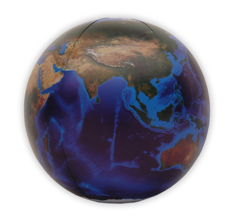 The Blue Marble Globe ist der Globus, der die Meeres tiefen abbildet und so die Plattentektonik veranschaulicht. Schönes Design und satte Farben zeichnen diese aufblasbare Weltkugel aus.