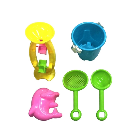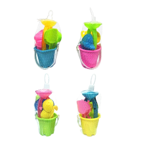 - Inhalt Set 2: Eimer, Schaufel, Rechen, Wasserspiel und Sandform
