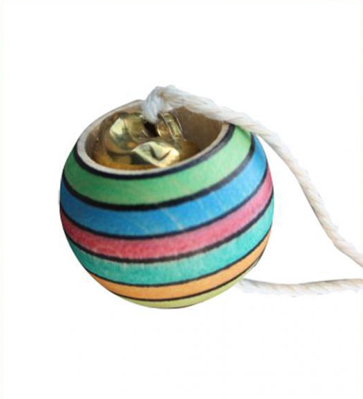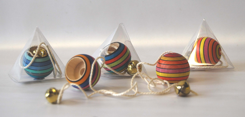 Es ist ein Geschicklichkeitsspiel mit hohem Spassfaktor: Das Glöckchen an der Schnur muss mit dem bunt gestreiften Becher aufgefangen werden.
