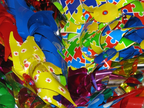 Klassisches, kleines Windrad in vielen bunten Farben.