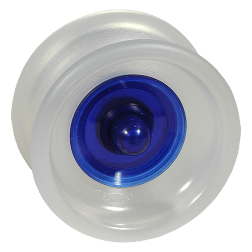 Das Yo-Yo mit federelastischen Halbschalen in transluszenten Farben oder weiß. Die Öffnung der Halbschalen kann verstellt und somit der Freilauf beeinflusst werden.