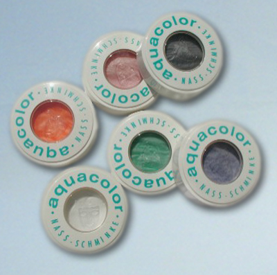 ist eine fettfreie, farbintensive Körperschminke. Sie ist hervorragend zur Gesichts- und Körperbemalung geeignet. Aquacolor wird mühelos mit einem angefeuchteten Schwamm oder Pinsel aufgetragen und nach dem Trocknen mit einem weichen Tuch oder der Hand sanft überrieben. Ein Abpudern ist nicht nötig. Aquacolor ist weitgehend wischfest und mit Wasser und Seife mühelos abwaschbar. Wenn die Schminkfarben mehrere Stunden wirken müssen, empfehlen wir den Fixierspray.