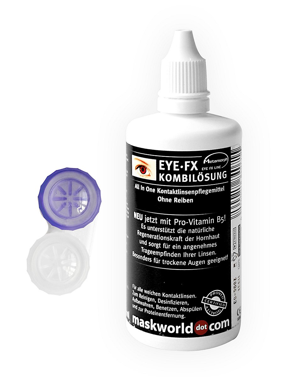 Kontaktlinsen-Pflegemittel zur Pflege jeglicher Effektlinsen. Sie dient der Pflege von weichen Effektlinsen, denn es eignet sich zum Reinigen, Desinfizieren, Aufbewahren, Benetzen, Abspülen und zur Proteinentfernung.