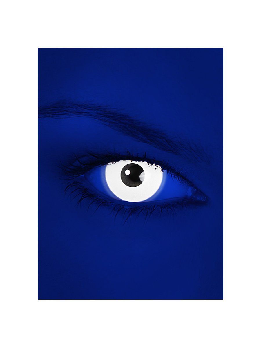 Weiche getönte Kontaktlinsen ohne Sehstärke mit Motiv UV Weiss. Sie bringen einen überraschenden Effekt an Parties mit UV- oder Schwarzlicht-Beleuchtung.