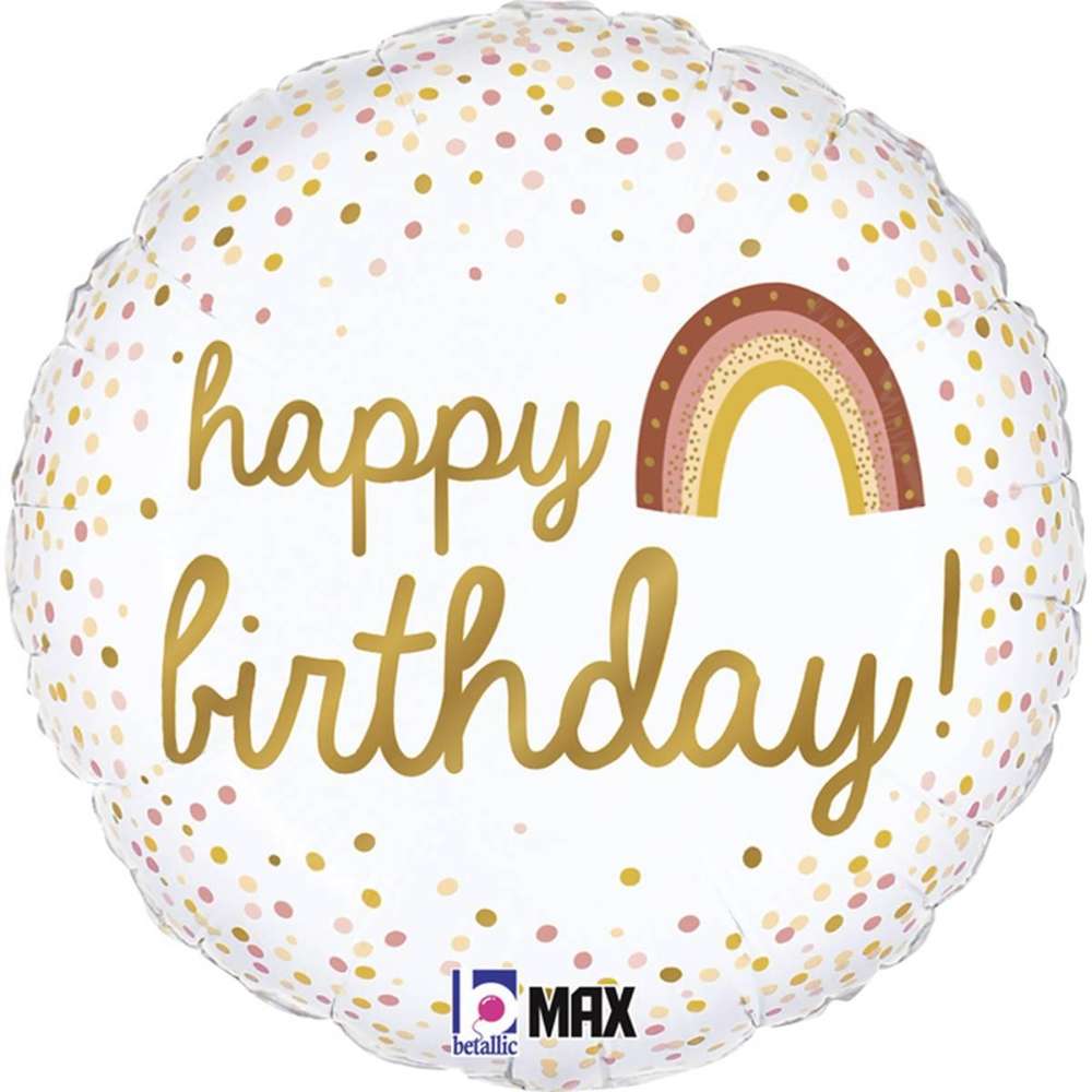 - Folienballon mit goldenen Konfetti und Happy-Birthday-Schriftzug